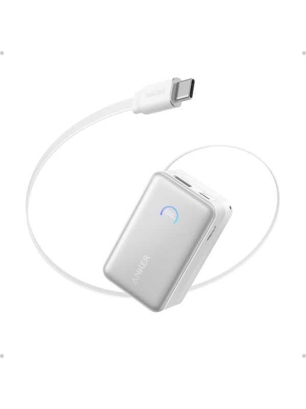 Anker Nano Power Bank (10K 45W Built-In Retractable USB-C Cable) – White Powerbank – Hvid – 10000 mAh