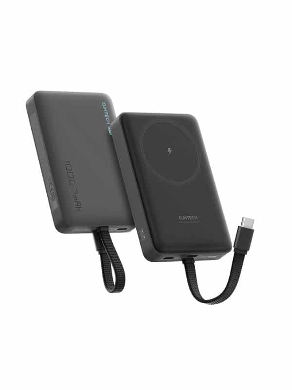 Powerbank med 10.000 mAh kapacitet kombinerer MagSafe-kompatibel magnetisk trådløs opladning, indbygget USB-C-kabel og en ekstra USB-C-port til fleksibel strøm i hverdagen.Cuktech CP132ML 10000mAh MagSafe Compatible Power Bank – Black understøtter 7.5W tr