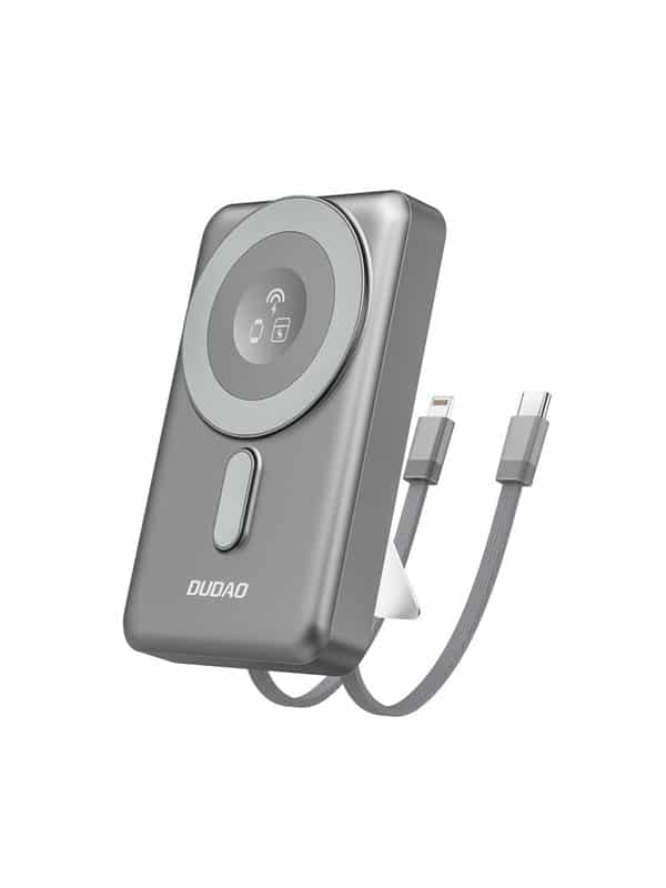 Dudao K29 10000mAh PD 20W MagSafe Power Bank with Metal Case Stand and Built-in USB-C/ Lightning Cables – Gray Powerbank – Grå – 10000 mAh