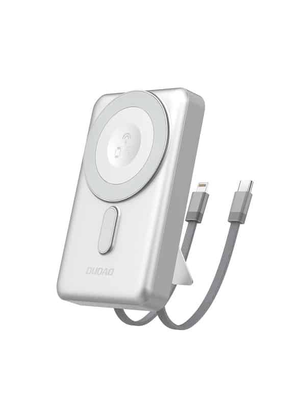 Dudao K29 10000mAh PD 20W MagSafe Powerbank with Metal Case Stand and Built-in USB-C/ Lightning Cables – Silver Powerbank – Sølv – 10000 mAh