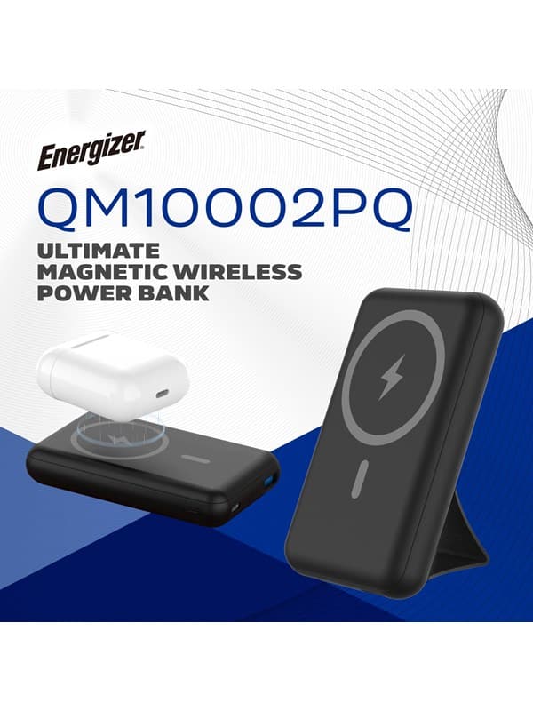 Powerbank med 10.000 mAh LiPo-kapacitet, magnetisk justering for kompatible telefoner, triple outputs inklusive 15W trådløs til Android og 7.5W til iPhone, samt 20W USBâC Power Delivery og Smart USBâA hurtigopladning.Energizer Powerbank tilbyder samti