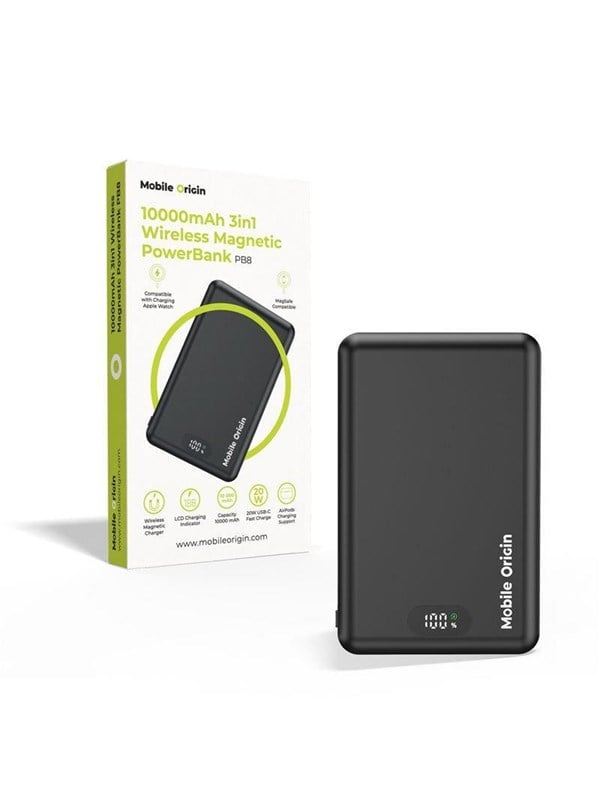 Mobile Origin PowerBank 10000mAh 3in1 Wireless Magnetic PowerBank PB8 Powerbank – Sort – 10000 mAh